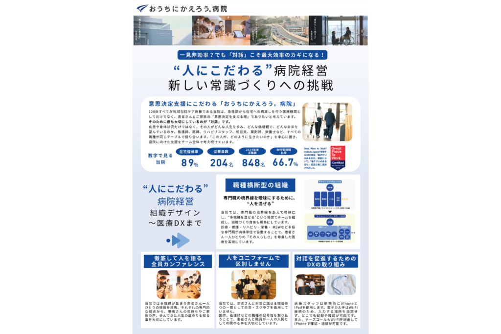 私たち「おうちにかえろう。病院」は、このようなイベントでの学びや出会いも大切にしながら、これからも “人にこだわる病院経営”を通して、新しい常識づくりに挑戦し続けます。