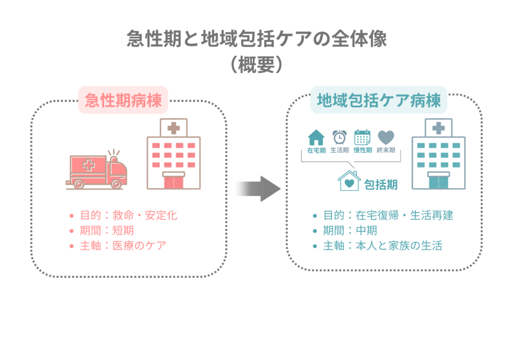 例えば、「急性期病棟」と比較してみると、このような役割の違いがあります。
